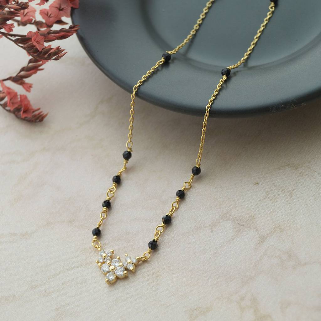 MannashMini Flower Garlann Gold Plated Sterling Silver Mangalsutra Necklace