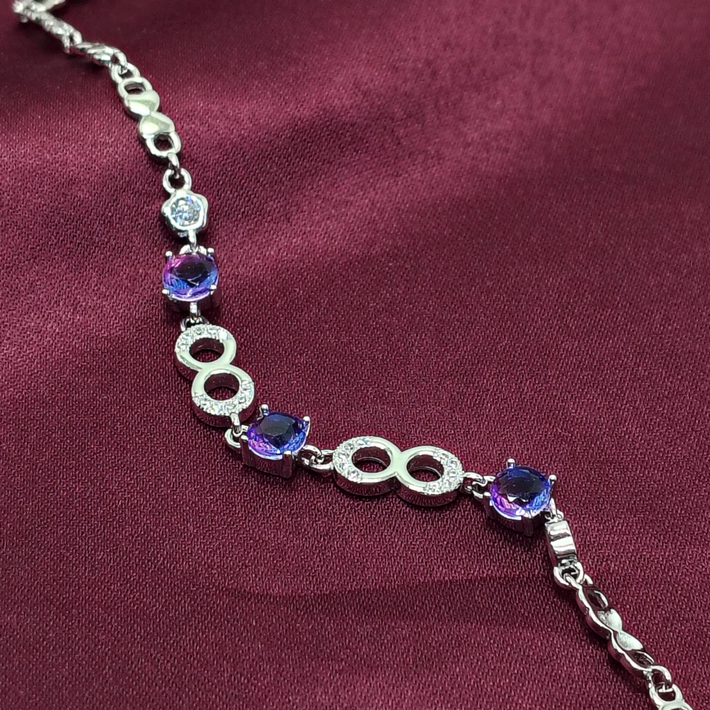 SYLVA JEWELSMisty Purple Stone 925 Silver Bracelet (8 Inches)