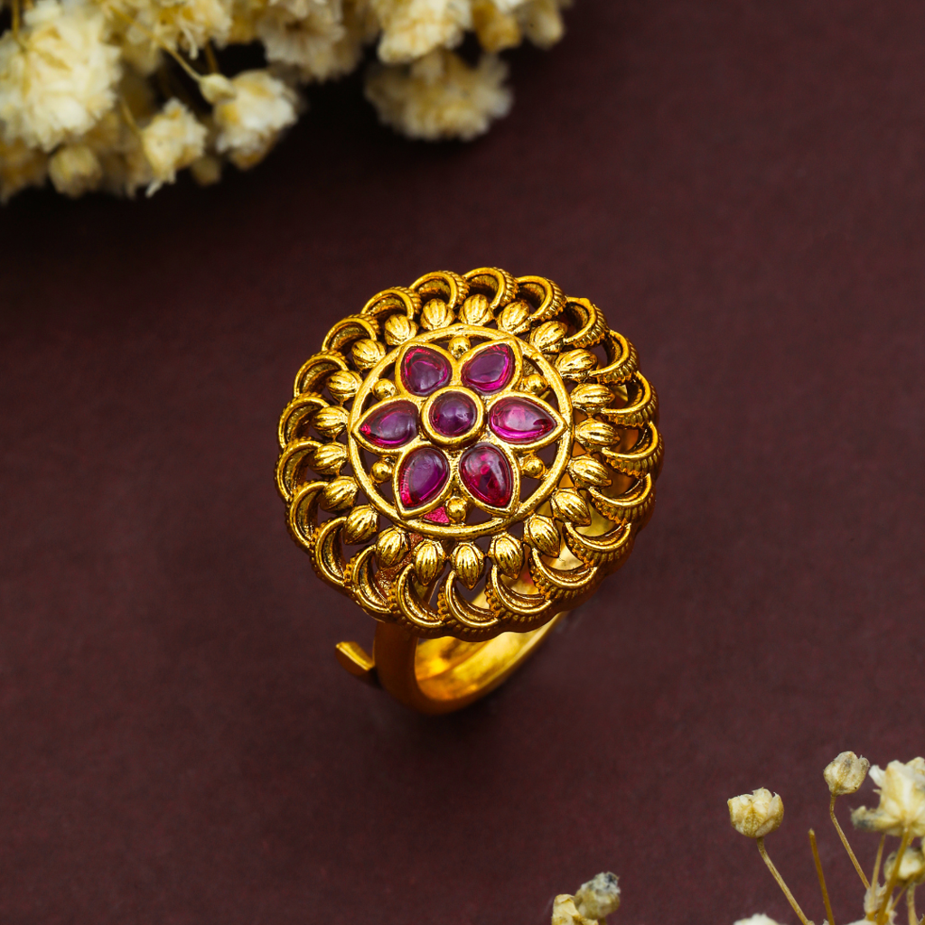 South Temple JewelleryModern Floral Temple Ring With Gold Finish V-2603