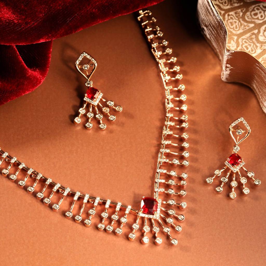 EsteleModern Glam: Rosegold-Plated Lightweight Ruby American Diamond Necklace Set For Women