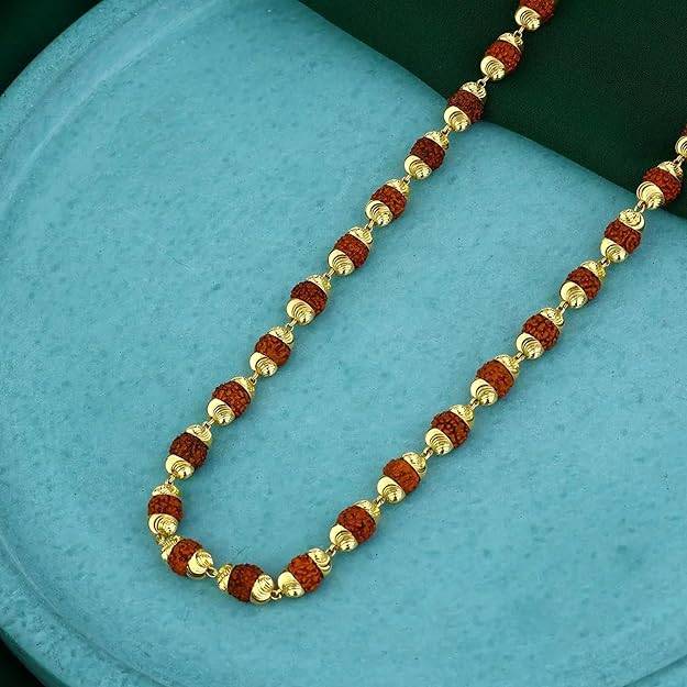 MysticModern Gold Finish Rudraksha Beaded Chain For Spiritual, Festive & Daily Wear For Men