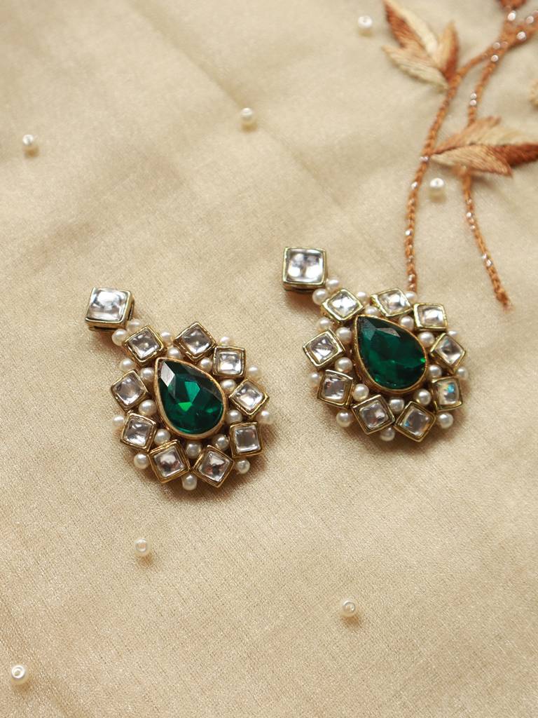 Morpankh Saaz - Kundan And Crystal Earrings : PAE100GR