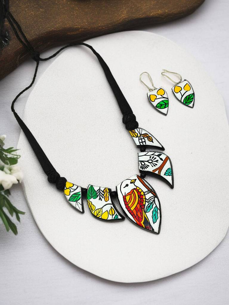 Mrritika Indian Artisan Birds Print Handmade Necklace Set : AJ-MR-HC-NL-05