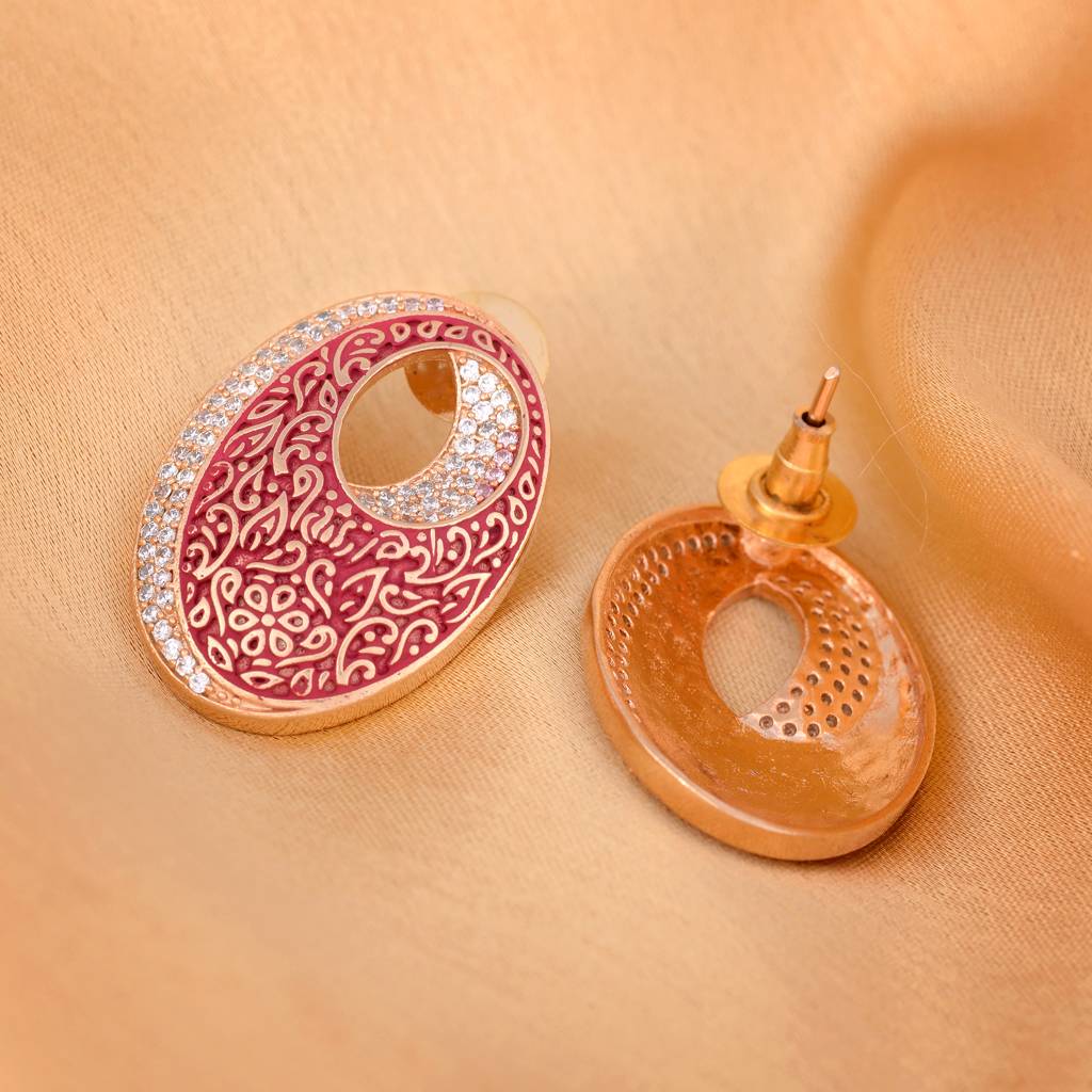 Saraf RS JewelleryOval Red Meenakari Small Earrings High Quality Enamelled Rose Gold Plated (Free Size)