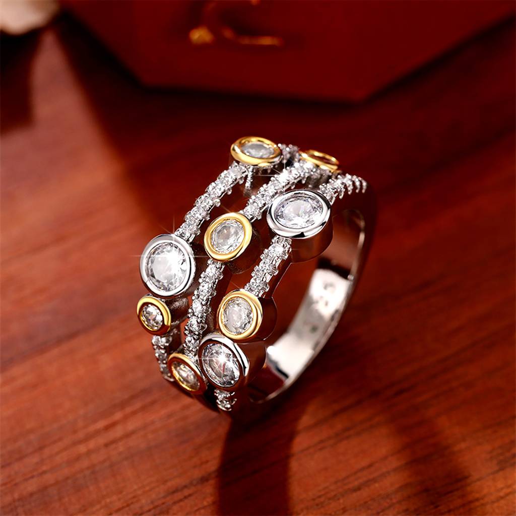 Peora2 Toned Cubic Zirconia Studded Stylish Finger Ring Fashion Jewellery Gift For Women Girlfriend (Size 7)