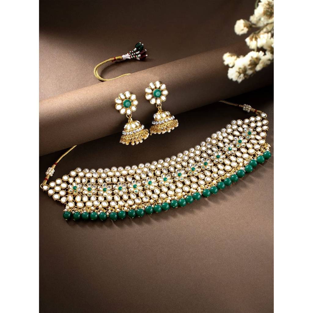Peora Wedding Kundan Faux Pearl Choker Necklace Earring Traditional Jewellery Set For Women : PF25N1161G