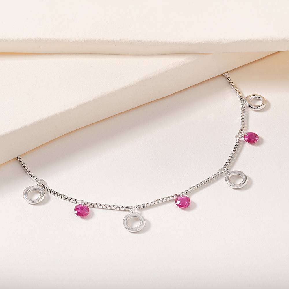 Touch925Pink Bead And Circle Charm Bracelet
