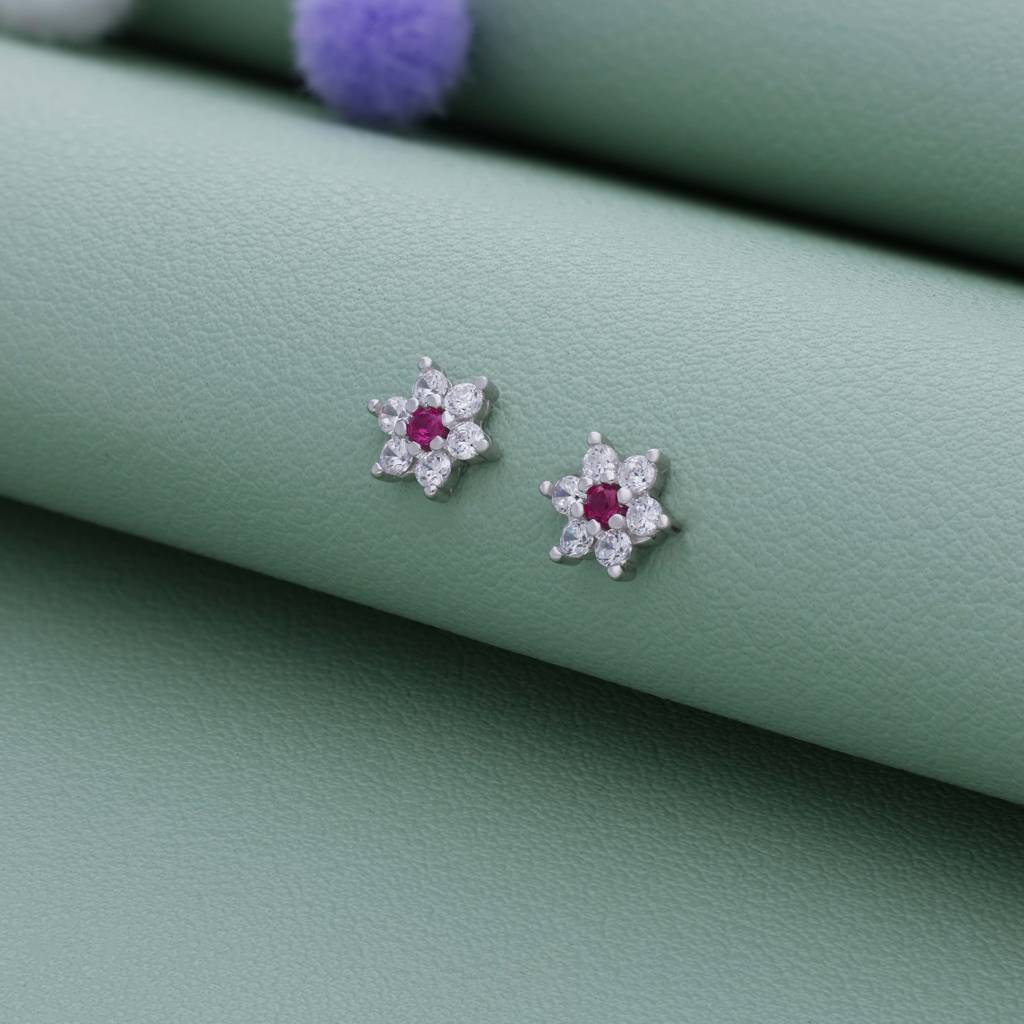 IyalPink Crystal Flower 925 Silver Stud For Kids & Teen(10+ Yrs)