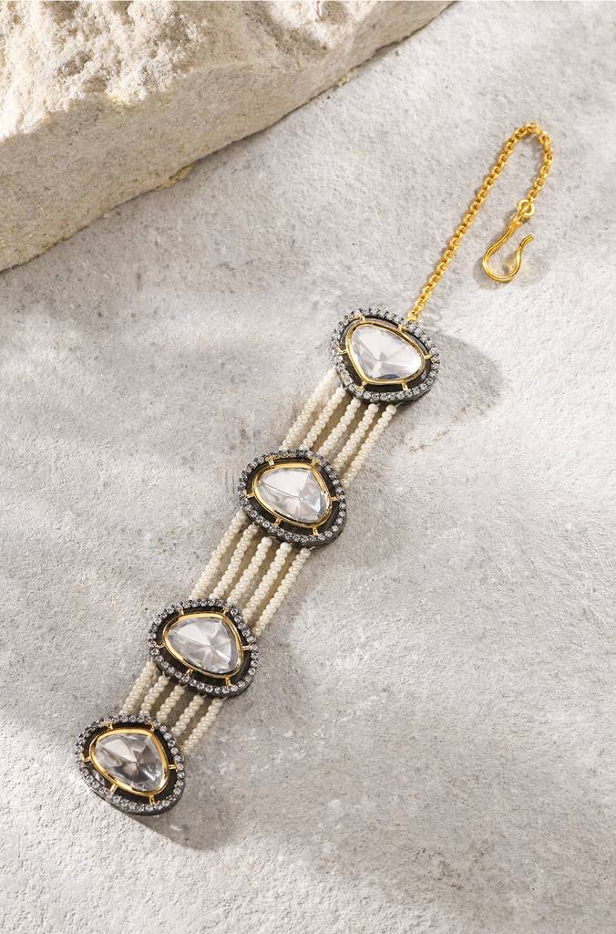 Polki Maangtikka With Pearls