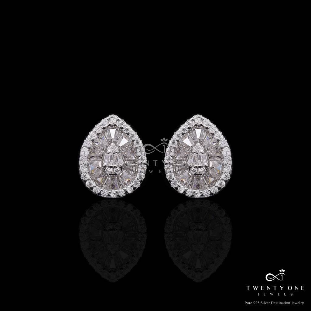 Premium Drop Shaped American Diamond Baguette Nora Stud Earrings On Pure 925 : TE2421