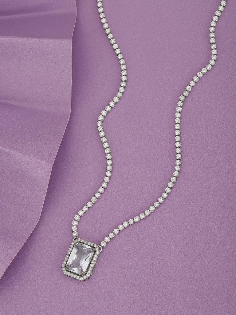 Premium Rhodium-Plated Cz Necklace : FJN4503