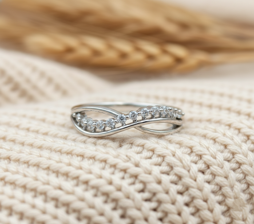 Love925Pure 925 Elegant Silver Twisted Infinity Ring With Sparkling Stones (Adjustable)