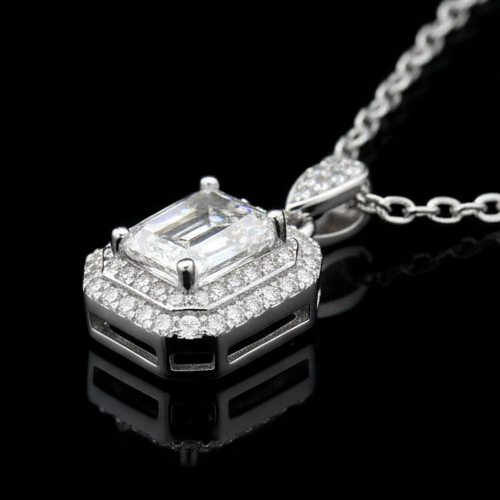 Pure 925 Silver Emerald Cut Three Layer Moissanite Pendant For Women : SYM-0200