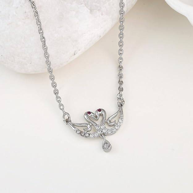 MysticRhodium Finish Swan Couple Pendant Necklace With Crystal Detailing For Women & Girls