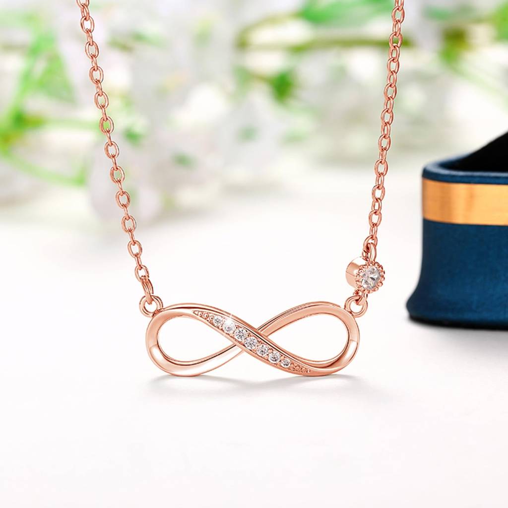 Rose Gold Plated Cubic Zirconia Studded Infinity Design Pendant Chain Necklace Stylish Fashion Jewellery For Women : PX8P180C