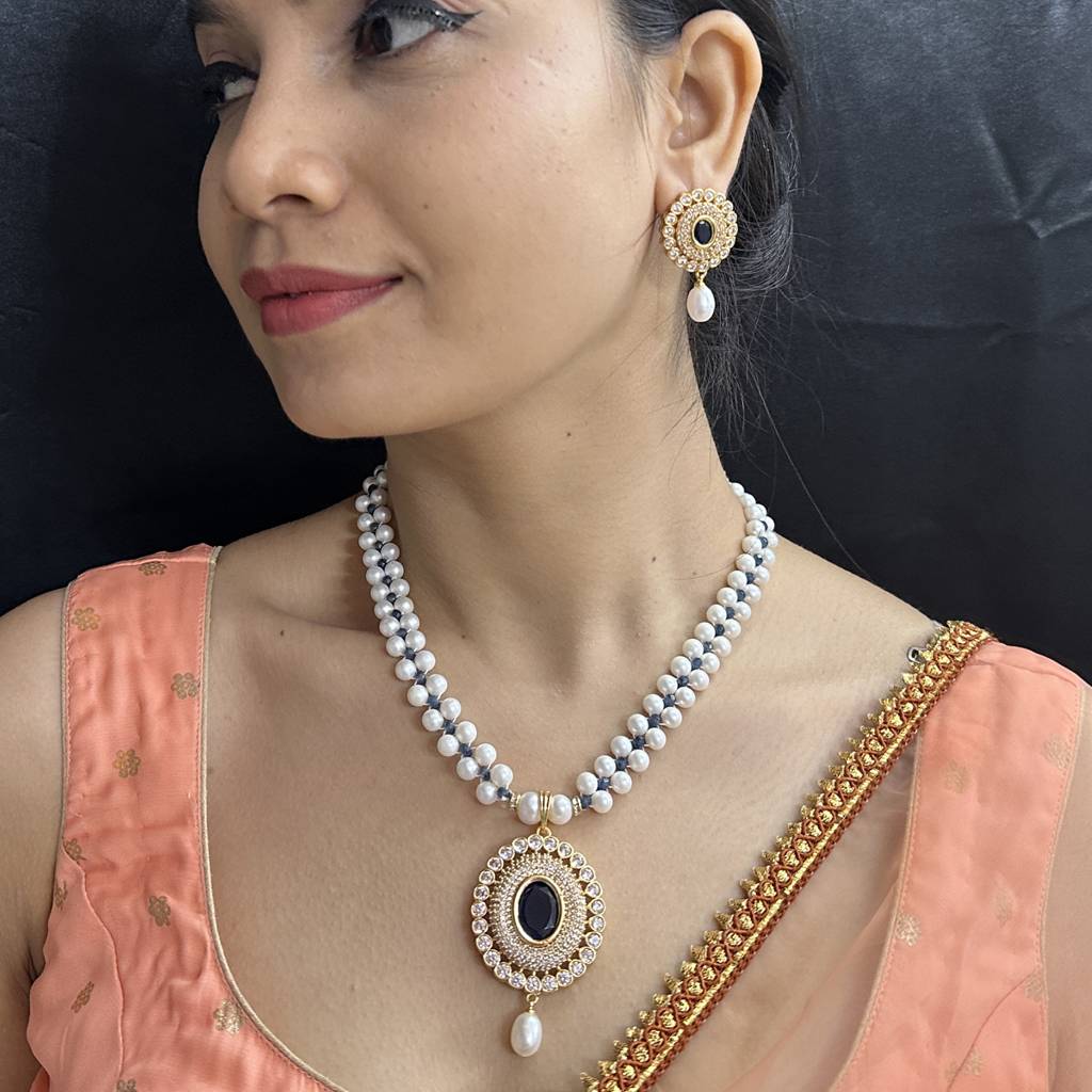 Rosette Pearl Necklace Set : JPFEB-24-019