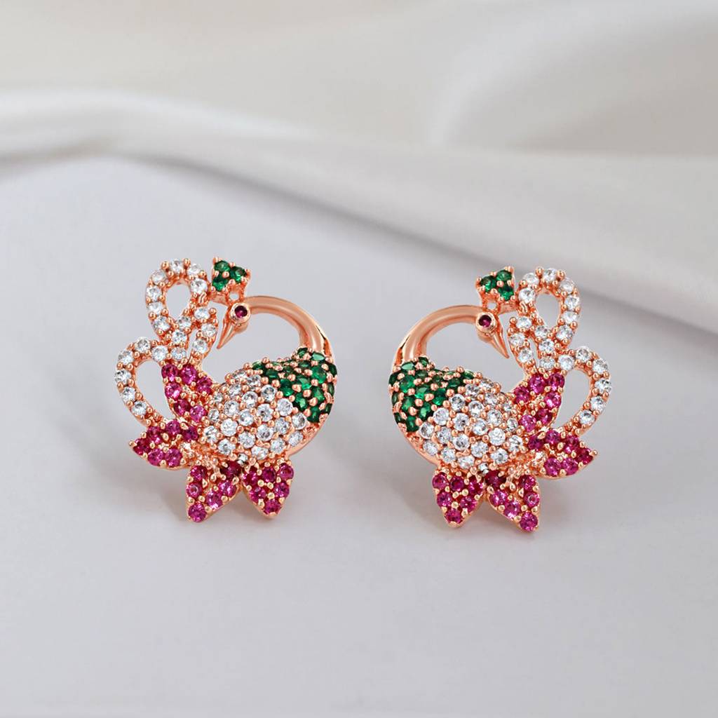 ZavyaRosy Peacock Elegance Rose Gold-Plated 925 Sterling Silver Earrings
