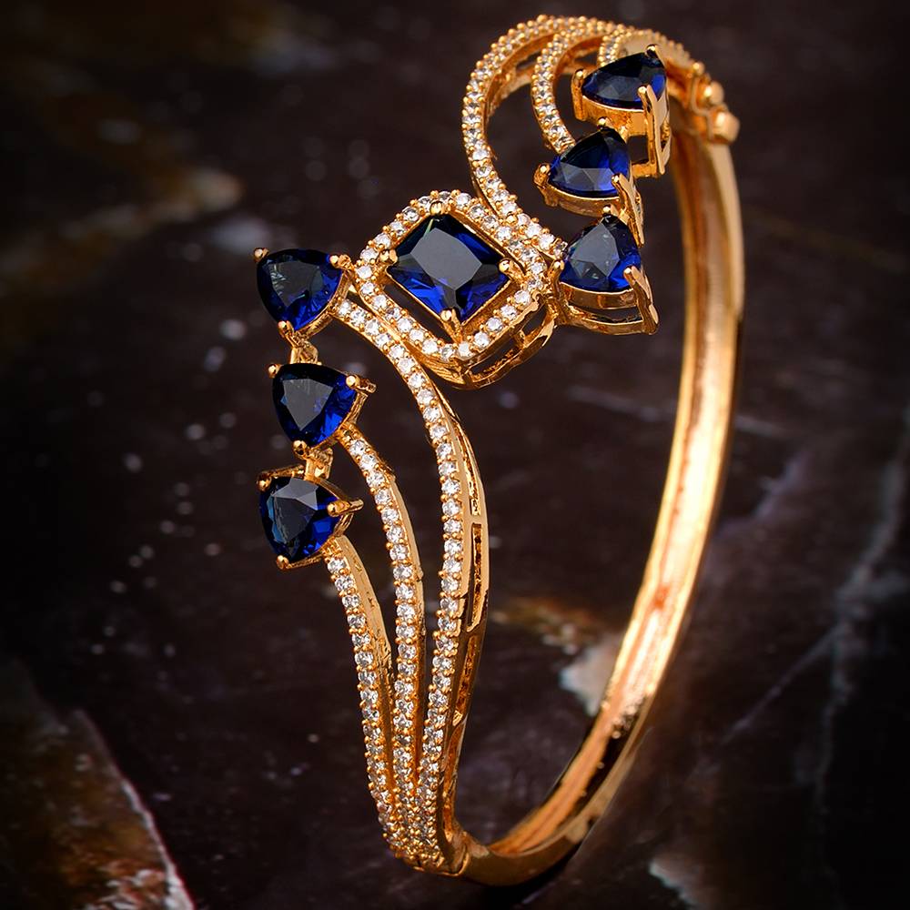 Saraf Jewellery, Gold Plated With Blue American Diamond Studded Handcrafted Stylish Bracelet For Women & Girls : SJBR1102