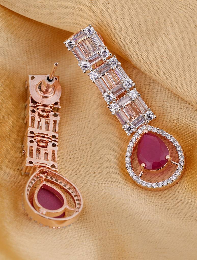 Saraf Rs Jewellery Ruby American Diamond Studded Drop Earrings For Women & Girls : SJER1216