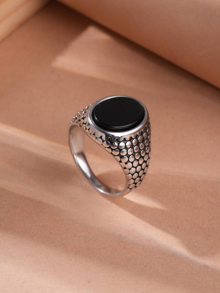 Serpent Style Onyx Ring For Men - Waterproof & Anti-Tarnish : RG0124-9