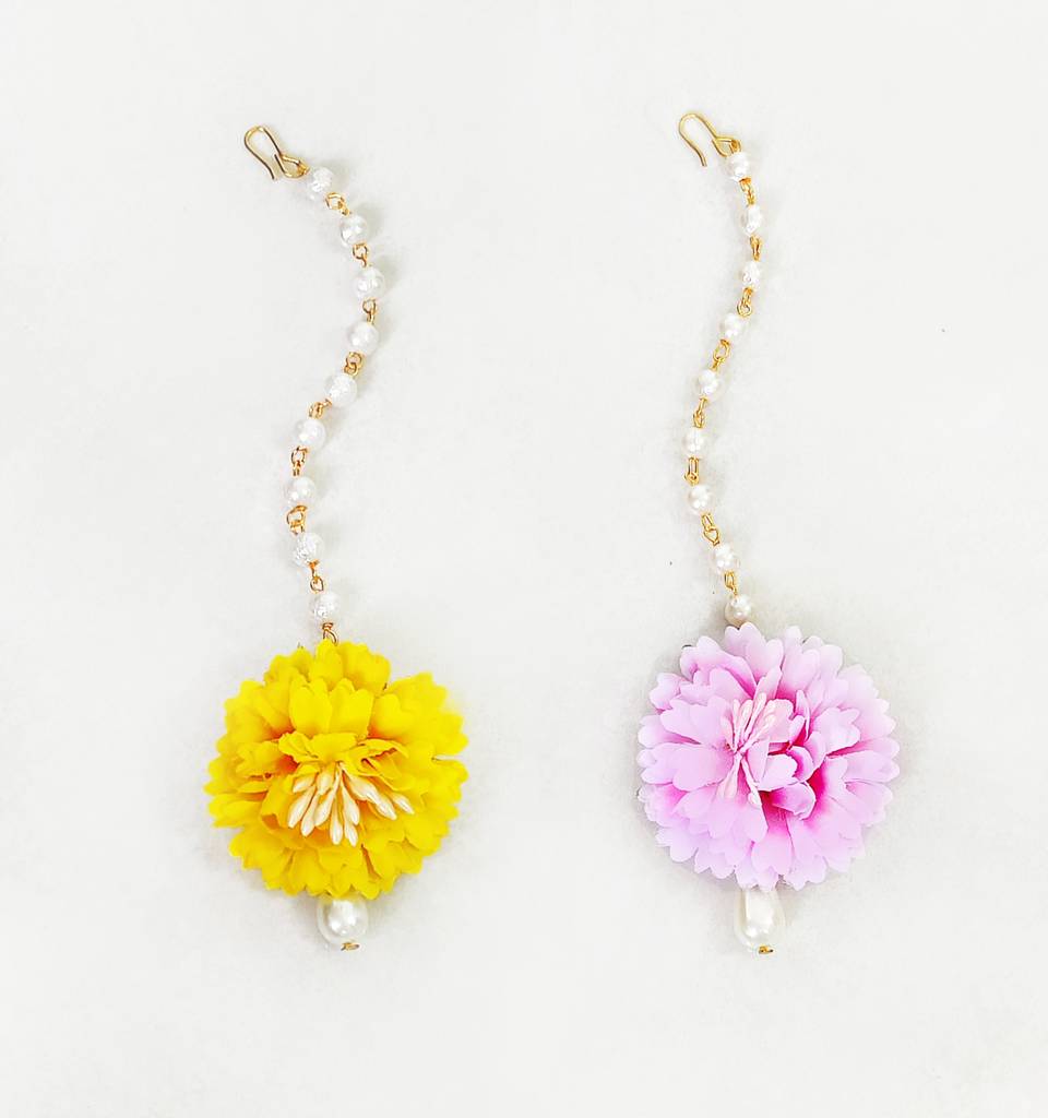 Set Of 2 Carnation Maang Teekas- Light Pink, Dark Yellow : WC29