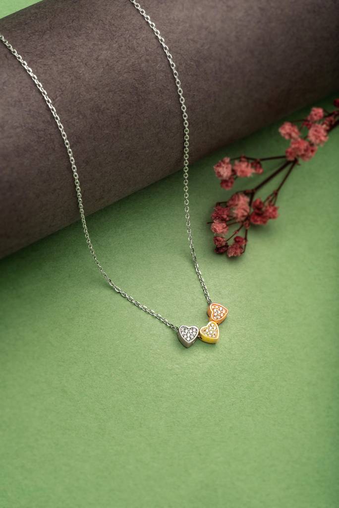 Silberry 925 Sterling Silver Triple Heart Necklace : N391