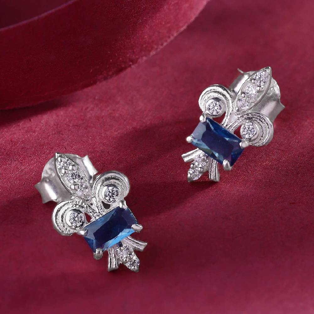 UnniyarchaSilver 92.5 Fleur De Lis Blue Earrings