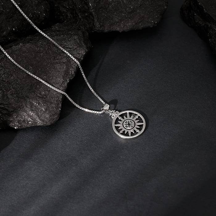 Silver Compass Of Life Pendant With Box Chain For Him : PD01292