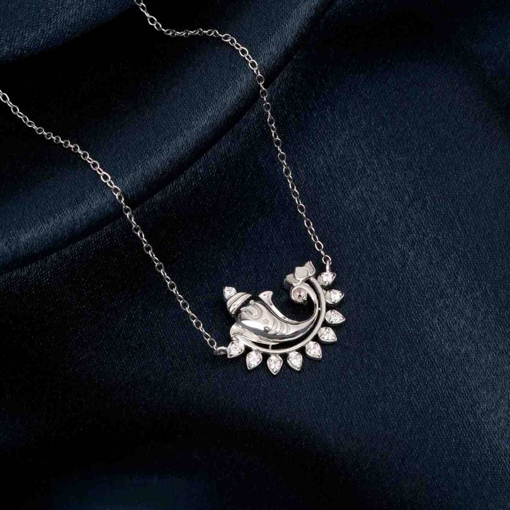 ZALKARISilver Lord Ganesh Diamond Pendant