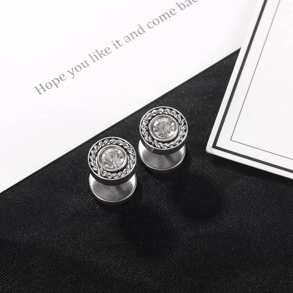 Silver Plated American Diamond Studded Stud Earings Stylish Design Fashion Jewellery For Men & Boys (Px9Me36) : PX9ME36