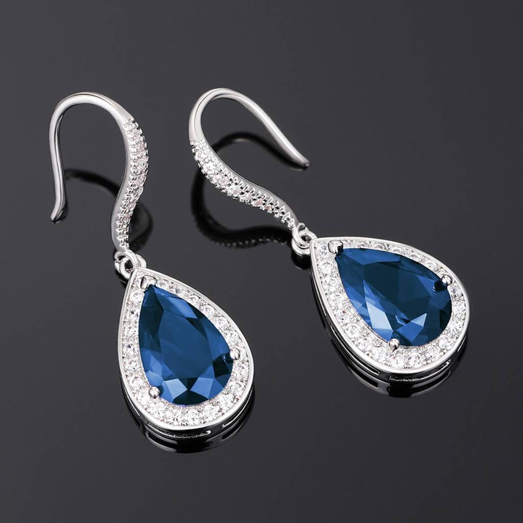 Silver Plated Blue Cubic Zirconia Studded Drop Earrings Fish Hook Back Fashion Jewellery For Women & Girls : PX8E173B