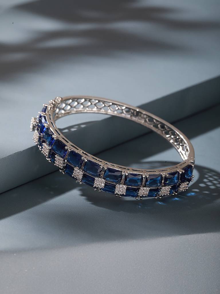 Saraf RS JewellerySilver Plated Blue Zircon Minimal Luxe Bridal Kada Bracelet (Size 2.4)