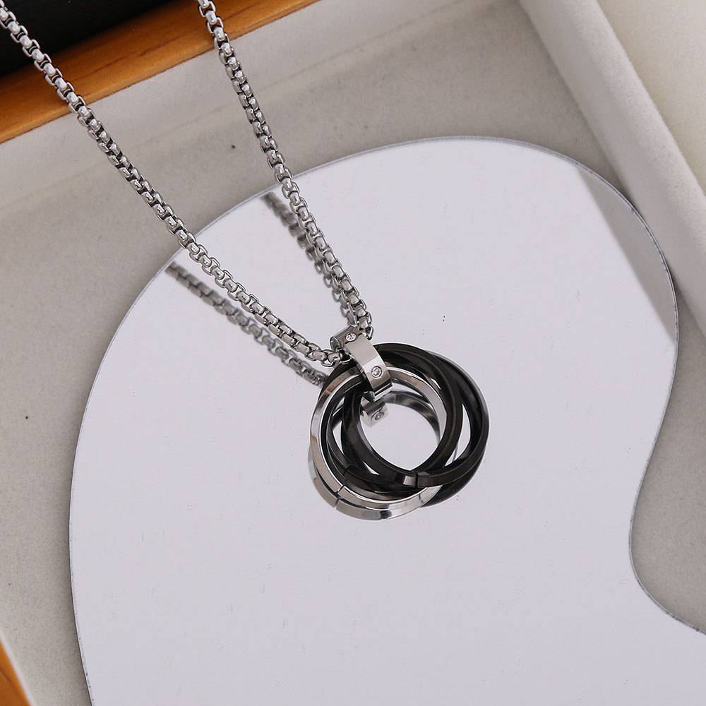 Silver Plated Stainless Steel Tri Circle Pendant Chain : ATO0624P431BK
