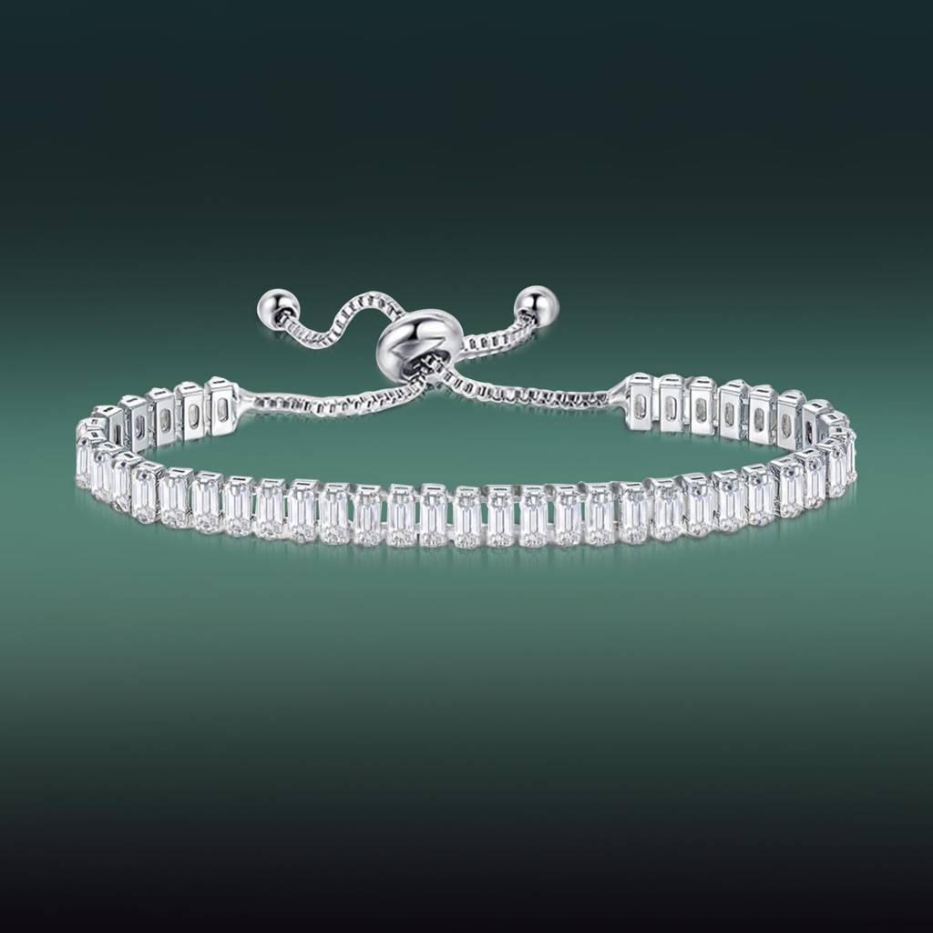 Silver Plated White Baguette Stone Studded Adjustable Tennis Bracelet Stylish Fashion Jewellery For Women & Girls : PX8B80S