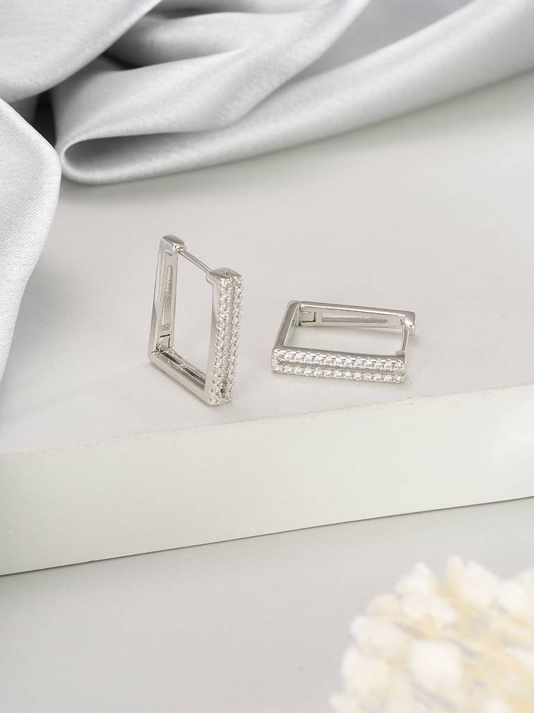 AatmanaSilver Toned Rhodium Western Style Square Hoop Earrings (Adjustable)