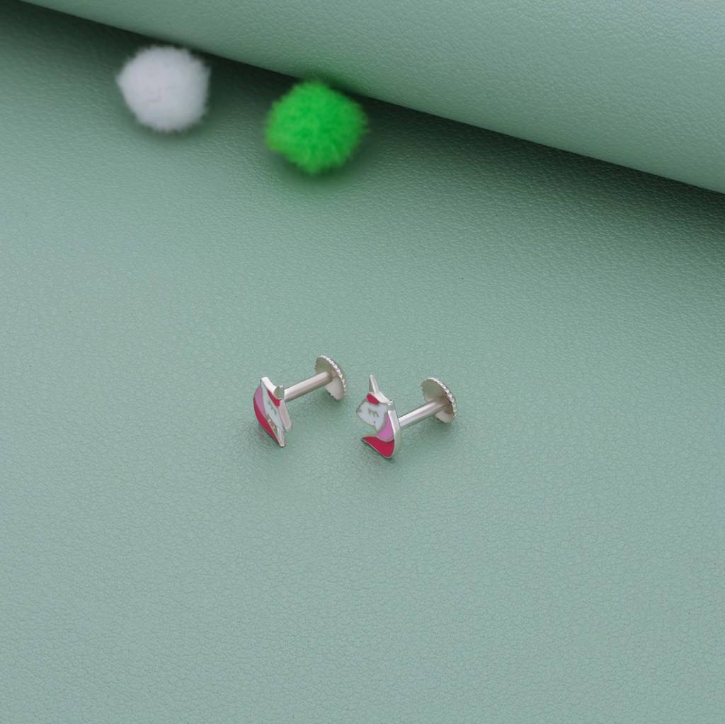 IyalSoft Pink Unicorn Silver Kid Stud Earring (6+ Yrs) | 925 Hallmark | Everyday Wear