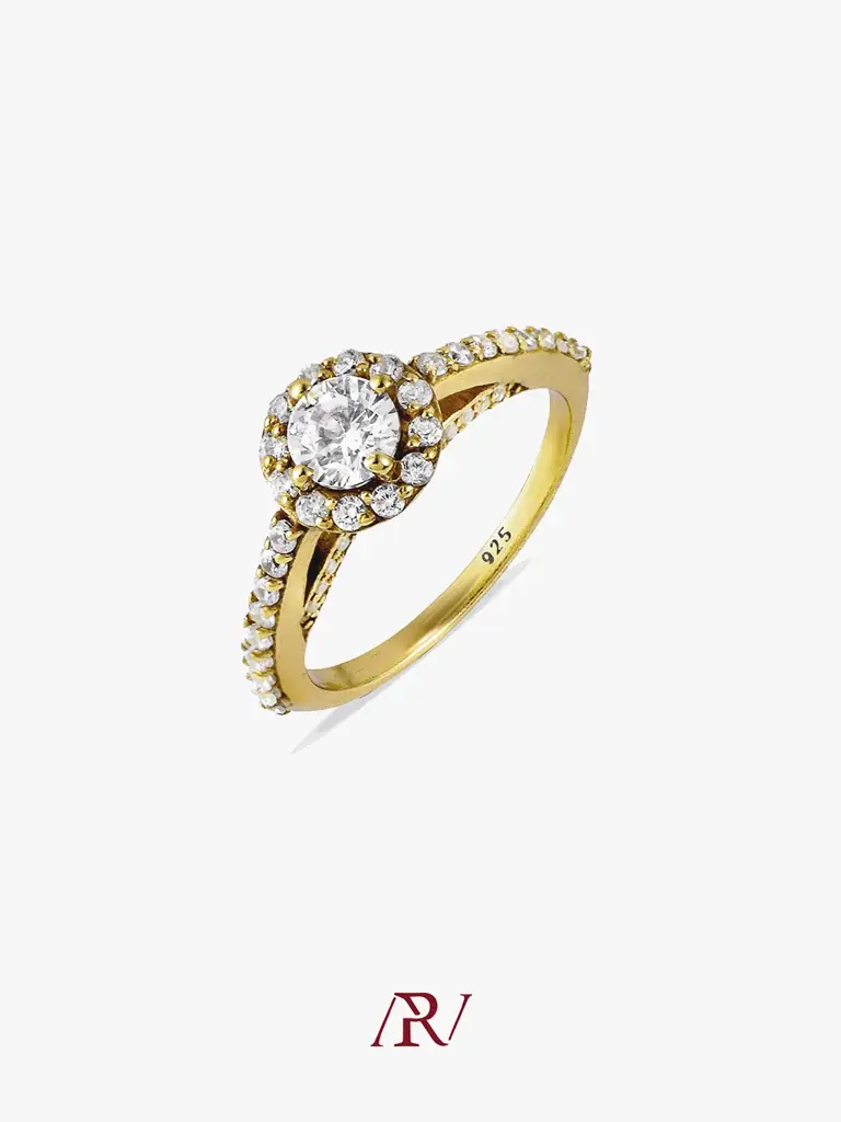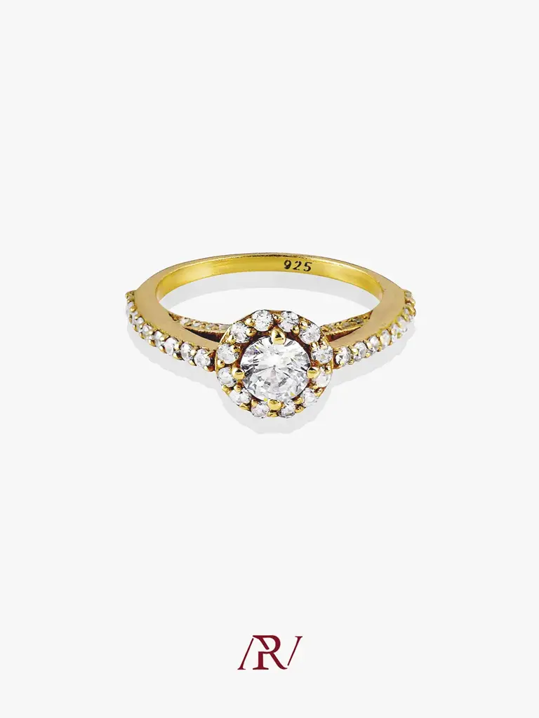 Ornate Solitaire Gold Plated Sterling Silver Adjustable Ring