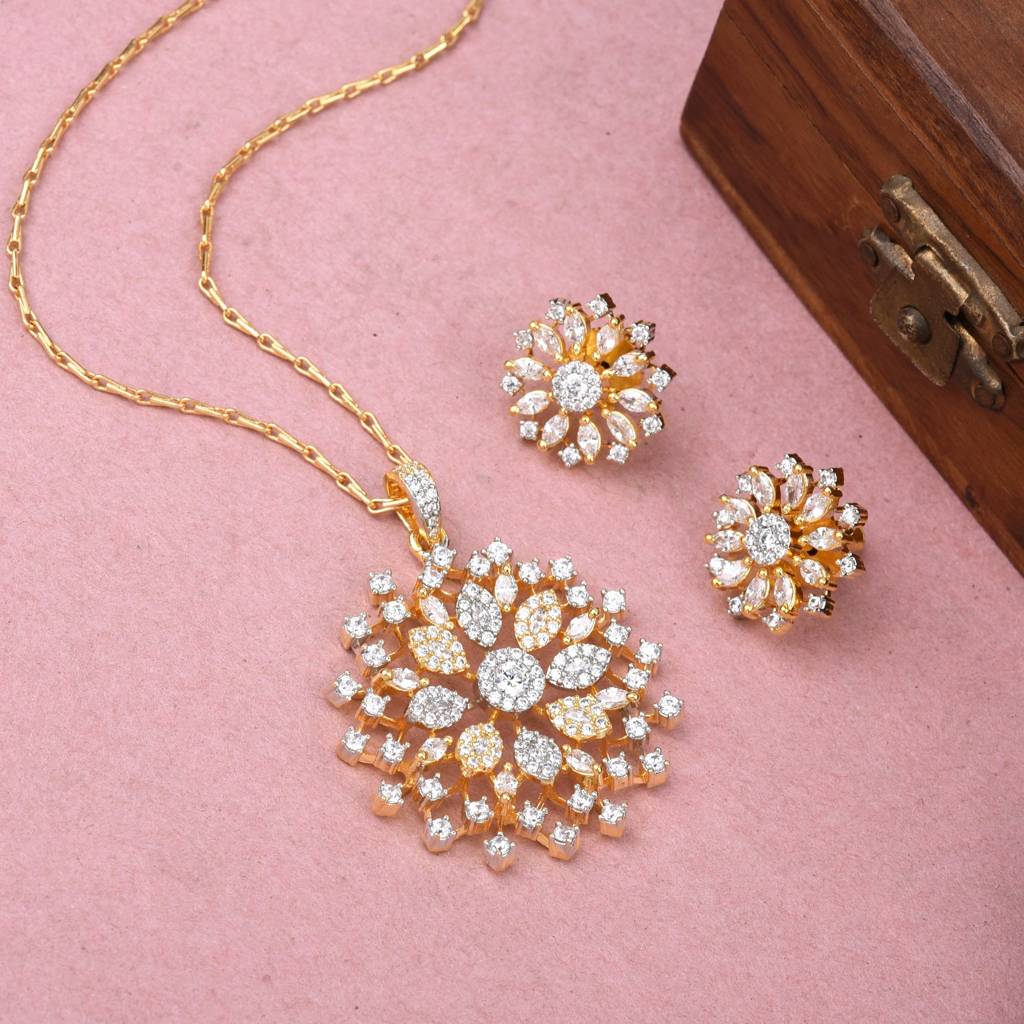 Sparkling Zircon Gold Plated Pendant Set : DVPENGJCZ79