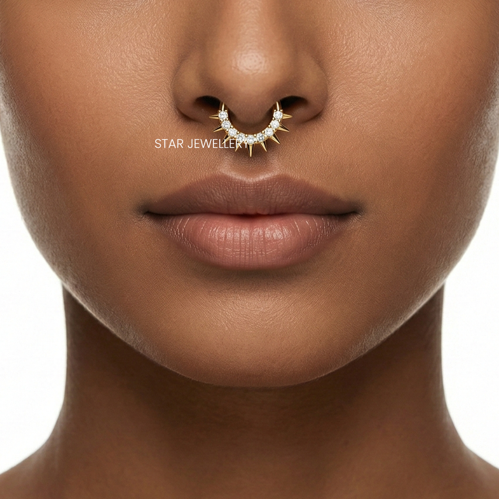 Spiked Moissanite Diamond Septum Nose Ring & Daith Piercing In 925 Sterling Silver : STE259