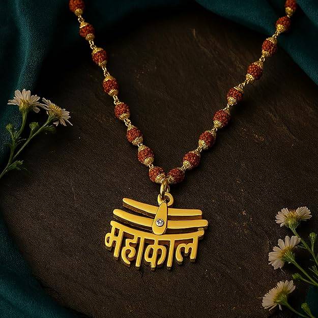 Spiritual Rudraksha Mala With €˜À¤®À¤¹À¤¾À¤•À¤¾À¤²Â€™ Pendant | Perfect For Daily Devotion & Gifting : OSAK060-IGBRNPENDANT