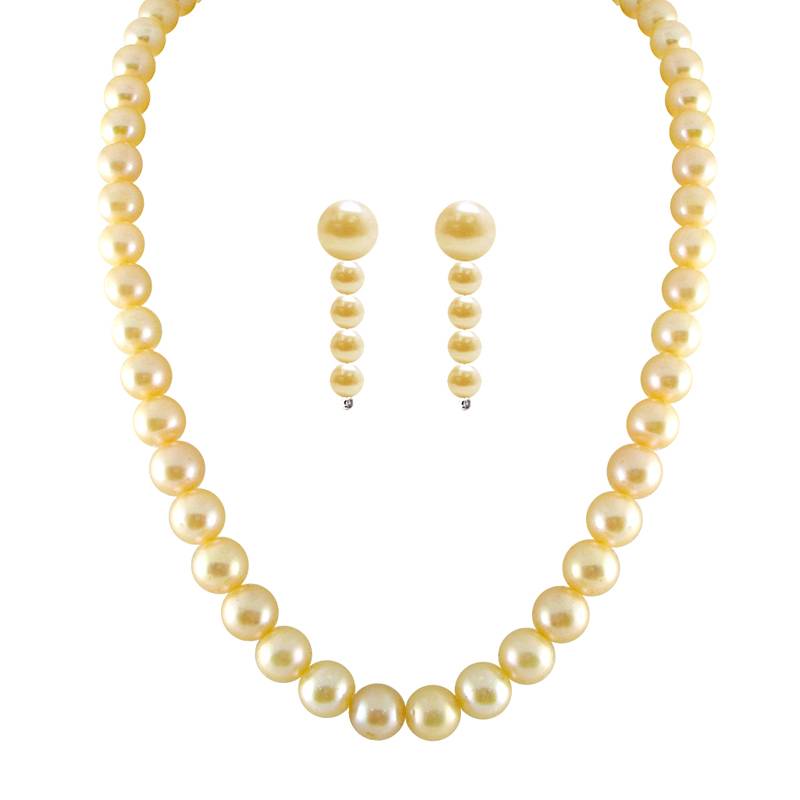 Sri Jagdamba Pearls Single Line Peach Pearl Classic Set : JPAUG-153