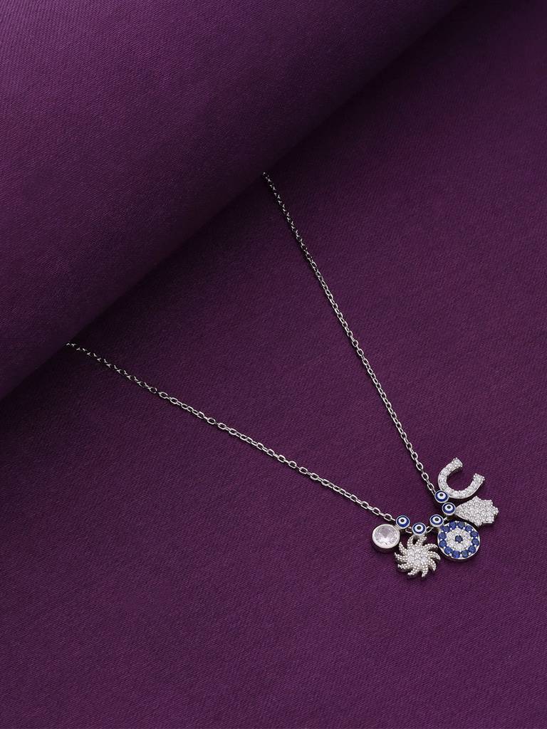 Kai JewelSterling Silver Multi Charms Evil Eye Chain Necklace (16 Inches + 2 Inches Adjustable)