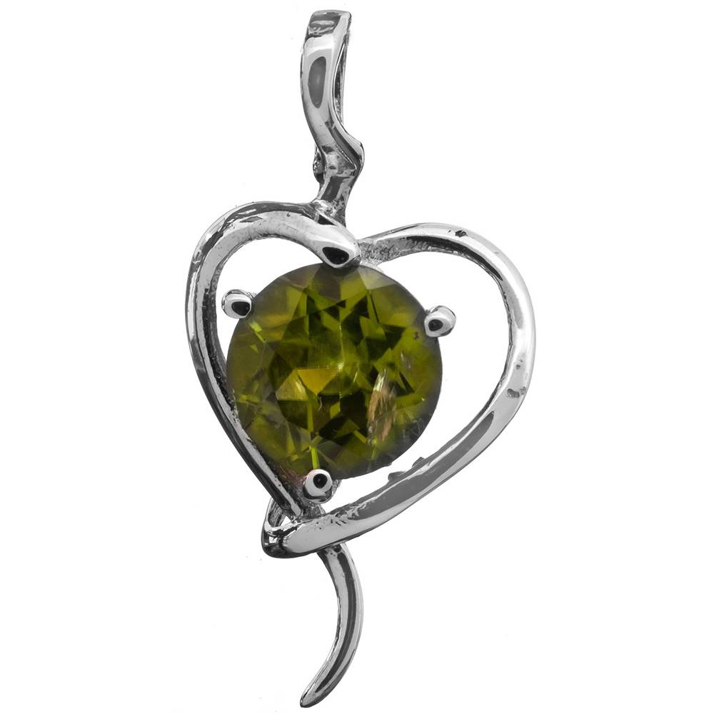 Sterling Silver Pendant With Stylish Heart Shape And Faceted Gemstone : LAD82--peridot