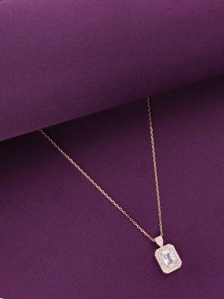 Sterling Silver Rose Gold Princess Cut Zircon Studded Necklace : NLCS521-RG-NA