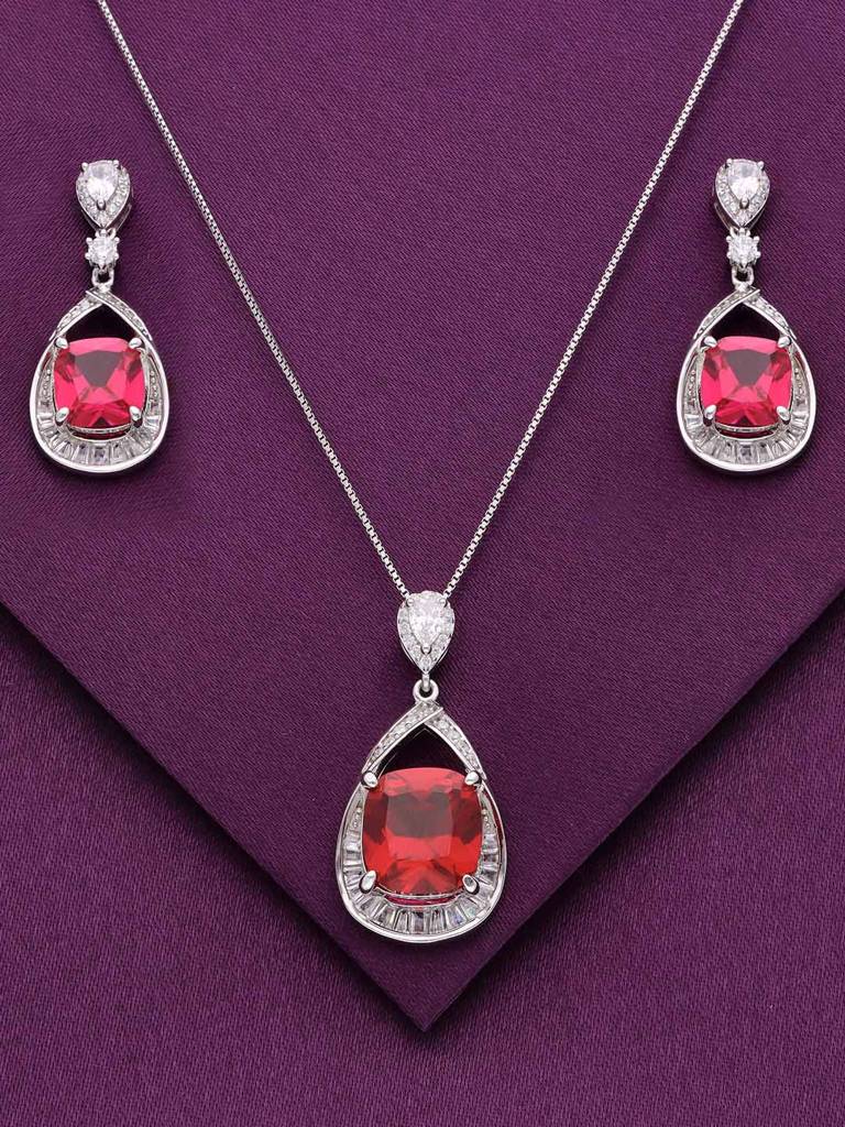 Sterling Stylish Drop Cut Pink Pendant With Chain & Earrings Set : PSST132-S-NA