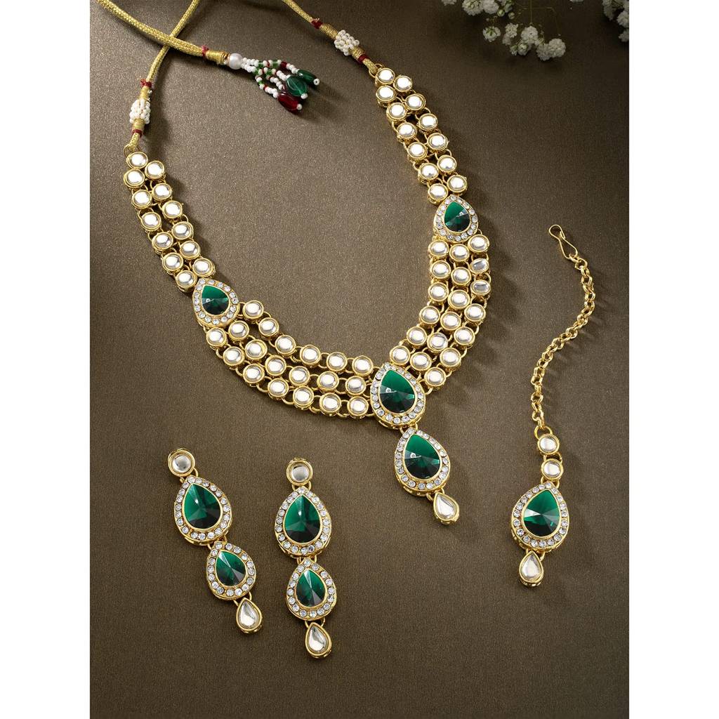 Studded Traditional Kundan Necklace Jewellery Set Gift For Women Girls-Pf37Nij315 : PF37NIJ315G