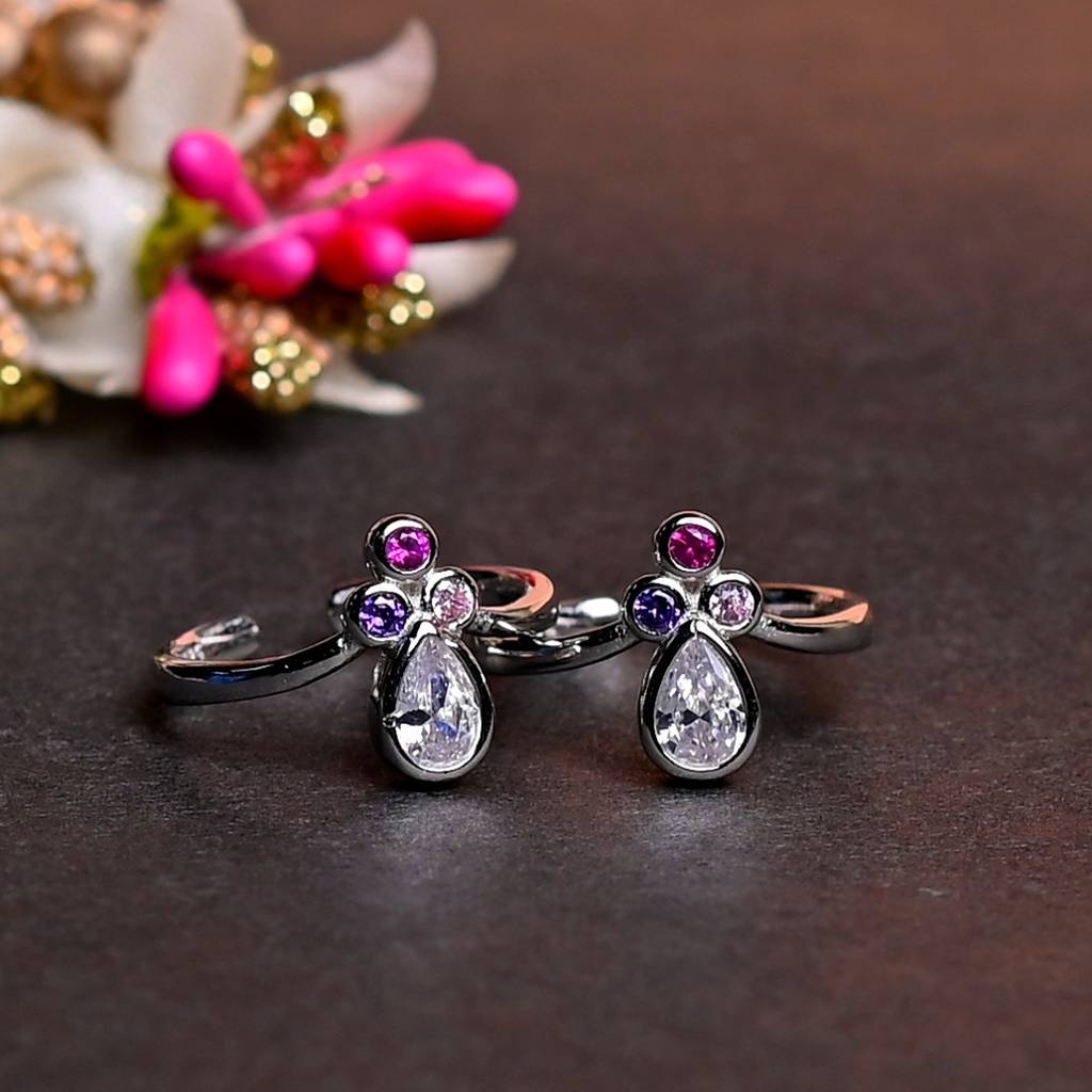 TAMARA SILVERSTeardrop Rainbow Dazzle Toe Rings (Adjustable)