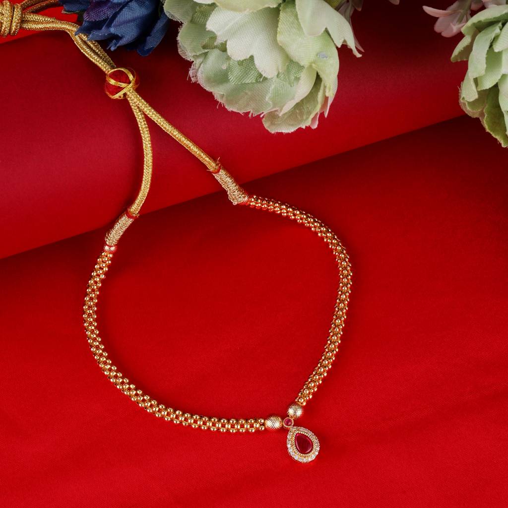 SALONI FASHION JEWELLERYTraditional Oval Shape Golden Balls Pink Stone Gold Plated Choker Necklace For Women