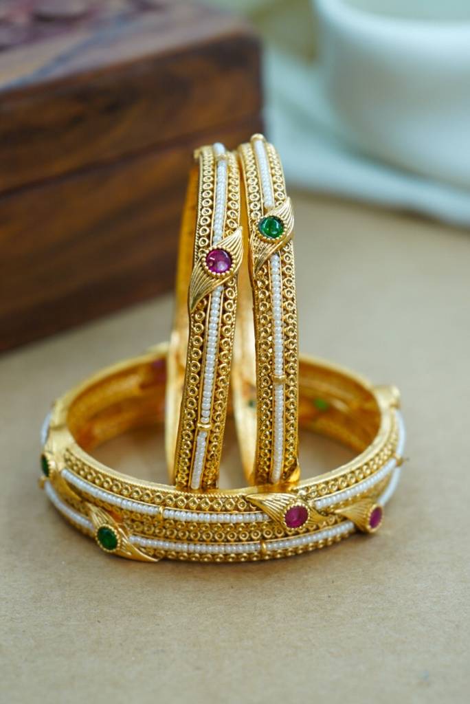 Traditional Pearl & Gold Heritage Bangles : HJ-9