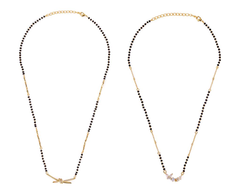 Traditional Splendid Flower Design Gold Plated Combo Set Of 2 Black Beaded Adjustable Chain Mangalsutra For  : 15MS102_15MS105